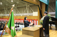 穏やかな春の光の中、満開の桜に迎えられ入学した119名の新入生。入学式では、担任からの呼名に元気な返事で答えて立つ姿勢は、大変頼もしく立派に思えました。また、「誓いの言葉」では、希望を胸に、中学校での勉強や部活動に頑張ろうという決意が込められていました。これから中学校の環境に徐々に慣れ、少し高い目標を掲げ挑戦し、また、新しい友達を一人でも多く増やしてほしいと思います。頼れる先輩たちが頑張る良き姿に学び、勉強や部活動に一生懸命取り組み、笑顔が溢れる充実した中学校生活を送ってほしいと願っています。