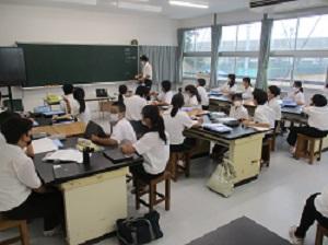 今日から、仮設校舎での本格的な授業が始まりました。仮設校舎の2階には、理科室と美術室があります。生徒たちは、真新しい教室で、2学期の授業をスタートさせました。