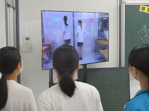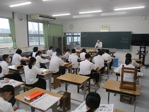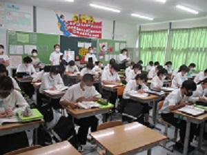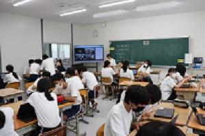 3年生の英語では、プレゼンをしていました。自分で作ったスライドを利用し、みんなの前で英語でスピーチをしていました。3年生ともなると、大変流暢に英語を話します。びっくりしました。今日の授業では、9月から本校に勤務しているALTも聞いていました。すいぶん楽しんでいたようです。