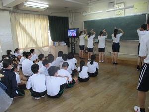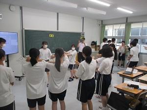 今日から、体育祭の団練習が始まりました。各団の3年生が1・2年生の教室に出向き、「ショータイム」に披露するダンスを、プリントや動画を使って丁寧に教えていました。グループで踊ったり全体で踊ったりしながら、楽しそうに活動していました。