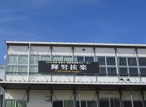 生徒会スローガン「輝努挨楽」が、旧校舎から仮設校舎へ引っ越しました。仮設校舎が、一気に華やかになりました。生徒の気持ちも昂りそうです!