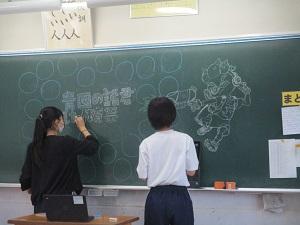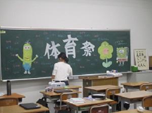 放課後、3年生は、教室の黒板を装飾していました。みんなで体育祭を楽しもうという気持ちが伝わってきます。明日が楽しみです。