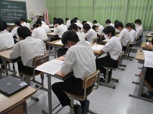 本日、3年生の確認テストを実施しました。生徒たちは、一つ一つの問題とじっくり向き合っていました。体育祭も終わり、少しずつ高校受験の足音が聞こえるようになってきました。まだ先のようですが、今の努力が、数か月後に実を結ぶはずです。3年生の皆さん、自分の目標を実現するために頑張ってください。