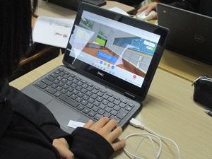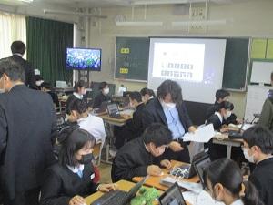 本日、1年生を対象に、メタバース体験の授業を実施しました。加賀市教育委員会とNTTdocomoのご支援により実現しました。生徒たちは、仮想空間に自分のアバターを作ったり、自分なりの仮想空間を作ったりして楽しみました。作ったアバター同士で、チャットを使って会話することもできます。最初は少してこずっていた生徒もいましたが、徐々に慣れてきて、自由に操作していました。加賀市長や教育長も来校され、実際に生徒たちと一緒に体験していただきました。生徒たちは、普段市長と話す機会はほとんどありませんが、この時間は、メタバース空間の中で積極的に会話をしていました。不思議なもので、最初は仮想空間上で会話していたのですが、そのうちリアルに市長と交流する姿がありました。メタバースは、立場を越えて人と人とをつなぐきっかけになりそうです。生徒たちにとって、大変貴重な経験になったと思います。このような経験をした生徒たちが創る未来を考えると、わくわくしますね。私たち教師も、このようなテクノロジーを教育に生かしていく必要があると感じました。