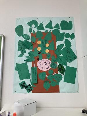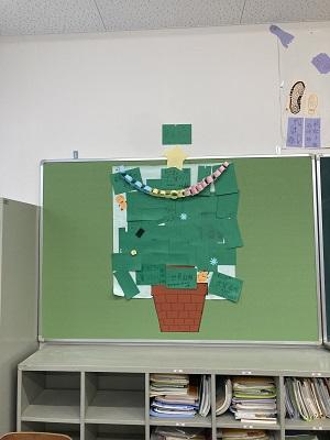 2年生のクラスには、クリスマスツリーが掲示されていました。一枚一枚の葉には、生徒一人一人の願いや言葉が書かれています。今年のクリスマスは、厳しい寒さの中で迎えそうですが、皆様が、家族でほっこりした気持ちですごせることを願っています。メリークリスマス