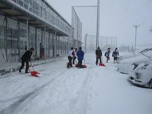 一気に銀世界となりました。やみまなく雪が降り続き、生徒玄関前も、見る見るうちに雪が積もりました。終礼後、保護者の迎えを待つ生徒たちが、積極的に玄関前を除雪してくれました。とっても寒い中でしたが、元気いっぱいで動いてくれました。除雪に協力してくれた生徒の皆さん、ありがとう!!