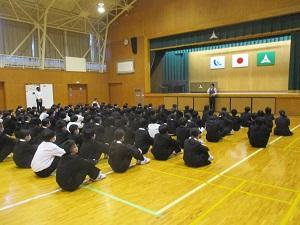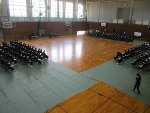 来週は、1・2年生の校外学習、3年生の修学旅行が予定されています。今日は、1年生で、校外学習のための学年集会を開きました。中学生になって初めての学校外での学習になります。決まりやマナーを守って、安全で楽しい日になるといいですね。