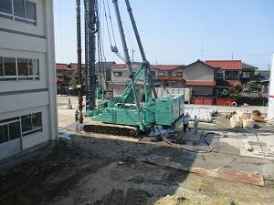 校舎改築の、基礎工事がいよいよ始まります。敷地内には何本もの長い筒状の基礎が準備されています。また、穴を開け基礎を打ち込む重機もセットされています。強くてしなやかな校舎を建てるためには、しっかりとした基礎が欠かせません。1年生の廊下からは、工事の様子がよく見えます。「基礎を固める・・」とはどういうことなのか、自分の目で見て学べるのではないでしょうか。