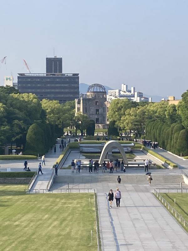 平和公園に移動し、被爆者援護会の石原智子さんの講話を聞き、その後、原爆資料館を見学しました。東和中学校にとっては、3年ぶり現地での平和学習となりました。やはり現地を訪れ、広島の生の声を聞くのは大切ですね。生徒達の心に響くものがあったと思います。