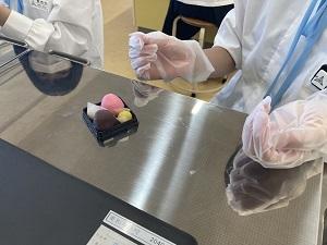 作法部では、和菓子作りに挑戦していました。あんを練り、形成し、そして花の模様を作っていました。作法部のメンバーは、器用に素敵な形に仕上げていました。