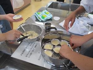 3年生の家庭科では、調理実習で蒸しパンを作っていました。お手軽ですが、結構おいしくできたようです。私もいただきましたが、とってもおいしかったです。お好みでチョコを混ぜたりするのもいいかと思います。ご家庭でもぜひ。