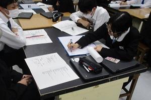 生徒会執行部・各クラスの代議員・教師が入り混じり、7つのグループをつくって意見を出し合いました。使用割があった方が使いやすい・・や、使用割がなくてもマナーを守って使うべき・・など、たくさんの意見が出ました。