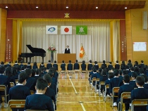 新一年生23名が少し緊張して入学式が始まりました。在校生は、体育館中に響く元気な声で、新入生を迎えました。