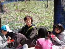 昨日までの荒れた天候とは一転して、心地よい日になりました。河内の里山を一時間ほど歩き、カタクリの群生地でお弁当を食べるという行程でした。