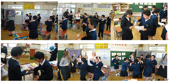 外国語では、人と出会った時のあいさつの仕方について学びました。返事は気分によって変わりますが、「fine」「good」「happy」「hungry」「grumpy」「sleepy」「tired」などを楽しくジェスチャーを使いながら理解することができました。友達同士であいさつする時も、その気分になりきってあいさつする姿がたくさん見られました。