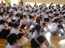 夏休みの初日は、「白山市一斉ラジオ体操」で始まりました。少し眠そうな人もいましたが、中学校には、たくさんの小学生が家の人と一緒に集まりました。体操をしている内に眠気も吹っ飛んだようです。