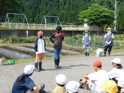 地域のボランティアさん3名に、苗の植え方や水のやり方を教えていただき、上手に植えることができました。