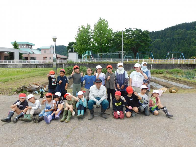 2024.5.30.【ボランティアさんに教えていただきながら、全校でさつまいもの苗植えを行いました!】