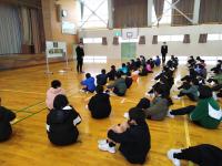 体育館では、救急カレーの話を栄養教諭の島津先生に教えていただきました。