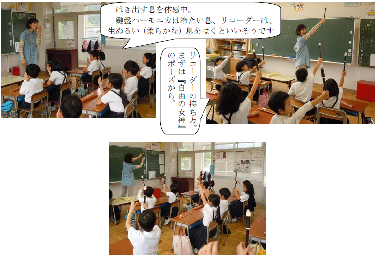 「早く使いたいな。」「楽しみ~。」いつから練習するのかと待ち望んでいた子どもたち。昨日、中村俊子先生をお招きしてのリコーダー講習会がありました。息・舌・指というリコーダー演奏での基本を教わったり、演奏を交えてのリコーダー紹介を楽しんだりと、充実した時間を過ごすことができました。