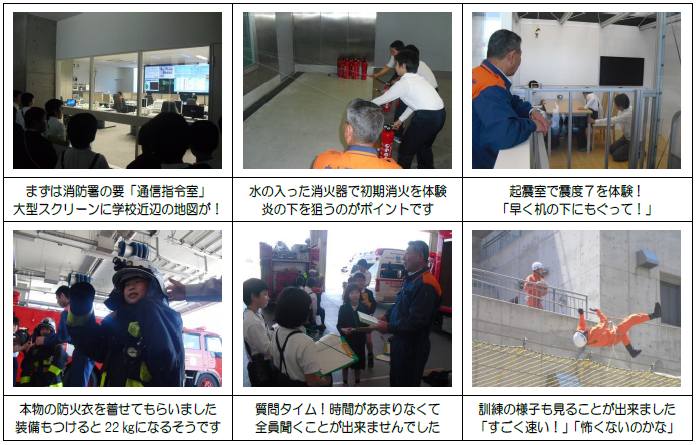 社会科では「火事から暮らしを守る」をテーマに学習を進めています。13日(先週金曜日)は「白山野々市広域消防本部・松任消防署」へ見学に行きました。みんな大変興味深げに施設を見たり体験したりしました。