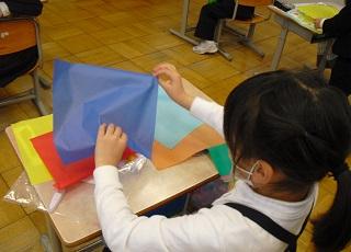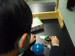 5年生。図工の作品が完成したので、友達の作品でもビー玉を転がしていました。