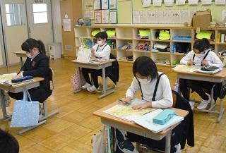 4年生は、国語科で作成したリーフレットを用いて伝統工芸について、3年生に発表していました。大きな声で分かりやすく発表していました。3年生も発表を聞いての感想などを積極的に発表していました。