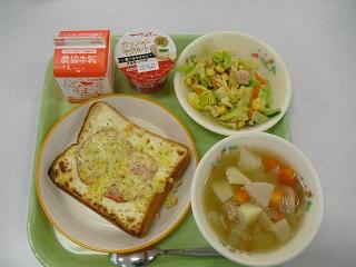 今日の給食は、トースト、きのこスパゲティ、白菜のクリーム煮でした。白菜の甘みがスープに出ていて、とてもおいしかったです。