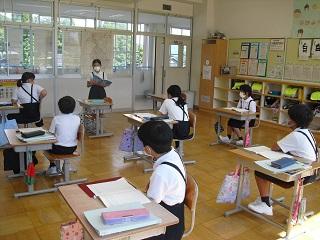 1年生は、授業の最後に国語の「くじらぐも」の音読劇を披露しました。台詞もしっかり覚えていて立派でした。