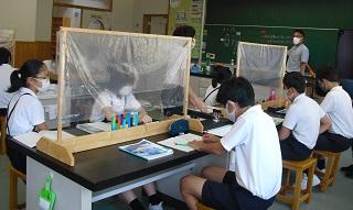 6年生の理科。水溶液の見分け方の学習です。リトマス紙の色がどのように変化するのか、実験していました。
