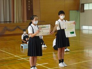 図書委員会。今月の読書賞の発表と本をたくさん読んで、読書貯金通帳をしっかり書く取組について伝えました。