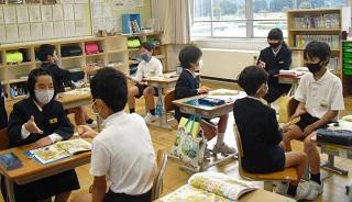 今日の朝読書の時間、6年生が1・2年生に読み聞かせをしました。1・2年生はとても喜んでいました。