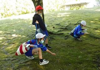 1年生の生活科の授業。校庭にいる昆虫をGIGA端末で写真に撮っていました。