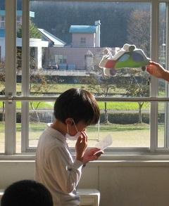 生活科の授業です。「おもちゃランド」で作ったおもちゃで実際に遊んでいます。
