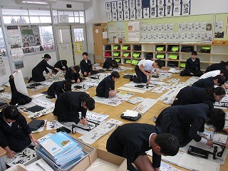 縦割り班ごとに、1枚シートをつくり、在校生がお祝いの