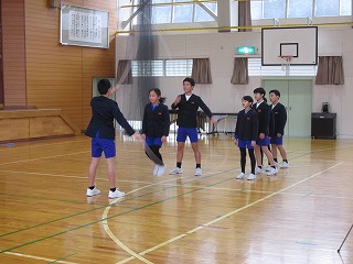 ビシごま(手作り)の先生が来校し、遊びを教えるための