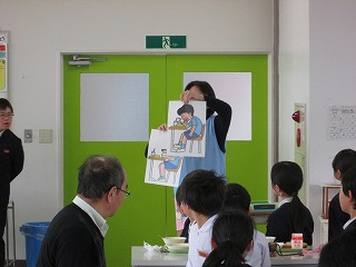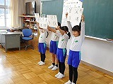 1年間のマナーをふり返り、『手洗い』『あいさつ』『食器の持ち方』