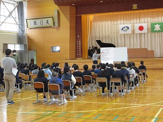 歌いました。六年生の眼は、その歌に釘付けでした。