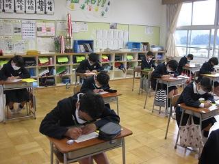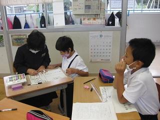 国語の授業。新出漢字の練習をしていました。