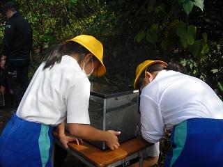 今日は3年生と4年生が、大日川にゴリの稚魚を放流しました。ゴリは水のきれいなところにしか住むことはできません。今日、放流したところも水がすんでいて、とてもきれいでした。子どもたちは、「大きくなってね。」と願いながら、放流しました。新聞社やテレビ局のインタビューにも積極的にこたえていました。この体験をするにあたり、多くの皆様にお世話になりました。ありがとうございました。