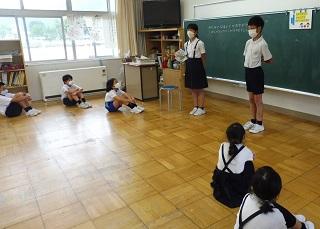 2年生は、学活の時間に1学期を振り返って、自分が成長したと思うことを発表したり、ゲームをしたりしていました。