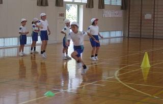 3年生の書写の授業です。筆を持つのもだんだん上手になってきました。字も堂々と書けています。4年生は体育でバトンパスの練習をしていました。