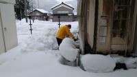 明日からの気温の上昇に期待して、受水槽上部の雪を下ろしました。