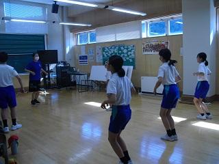 4年生の外国語活動。文房具の言い方について学習していました。ALTの先生が英語で言った文房具を聞き取って上にあげています。