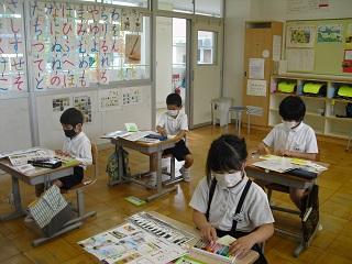 1年生の国語。「おおきなかぶ」の授業です。登場人物になりきって音読していました。