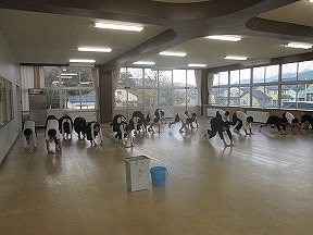 子ども達は、体育館2階に集まり練習に励んでいます!