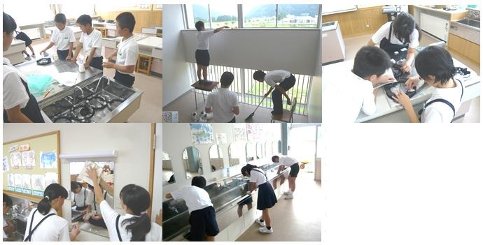 家庭科の実践で、学校の掃除を行いました。普段はあまり掃除をしないような場所を、普段はあまり使わないような道具を使ってきれいにしてみました。