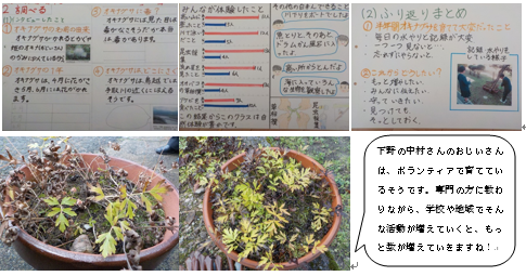 それと並行して、石川県では鳥越・河内にしか咲いていない『オキナグサ』についても学校で観察しながら調べていました。白山自然保護センターの平松先生にご協力いただき、たくさんのことを教えてもらいました。そしてついに!オキナグサの1年の様子や観察記録、そこから分かったことやこれから大切にしたいことなどを、全員で分担しながらまとめることができました。学習したことが生かされた、立派なまとめに仕上がりましたよ!読書週間中です!