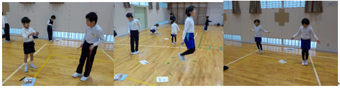 今日から、なわとびチャレンジタイムが始まりました。同じたてわり班のメンバーで、高学年は低学年とペアを組み、数を数えたり、跳び方を教えたりしていきます。