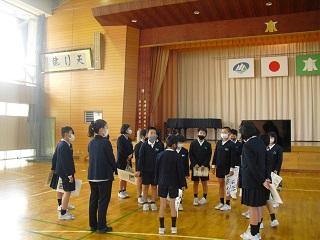 冷たい雨やみぞれが降る寒い日になりましたが、子どもたちは今日も元気に活動していました。2学期も残りわずかになりました。学校では2学期の振り返りをしっかりして3学期につなげていきます。今日は地区別安全指導と集団下校訓練をしました。雪道で気をつけることやバス内でのマナーなどについて確認しました。